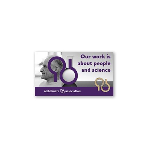 Comes on a 2” x 3.5” card with information about the Alzheimer’s Association