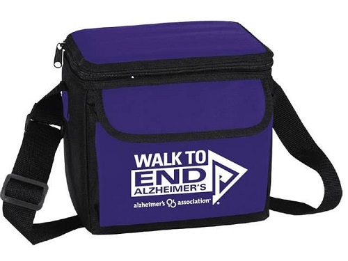 This polyester cooler features front and side pockets, thermal lining, two grab handles and a shoulder strap. Holds up to eight cans. PVC- and phthalate-free. 10"L x 5.75"W x 6.25"H