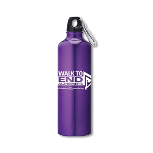 This 26-ounce aluminum water bottle includes a twist-on lid and carabiner.